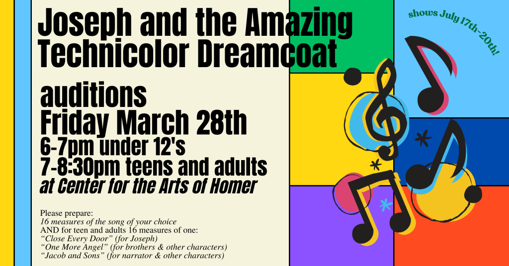 It’s time to audition for this year’s Center Summer Theater production. Everyone who auditions will get a part in the musical, and all ages and abilities are welcome.